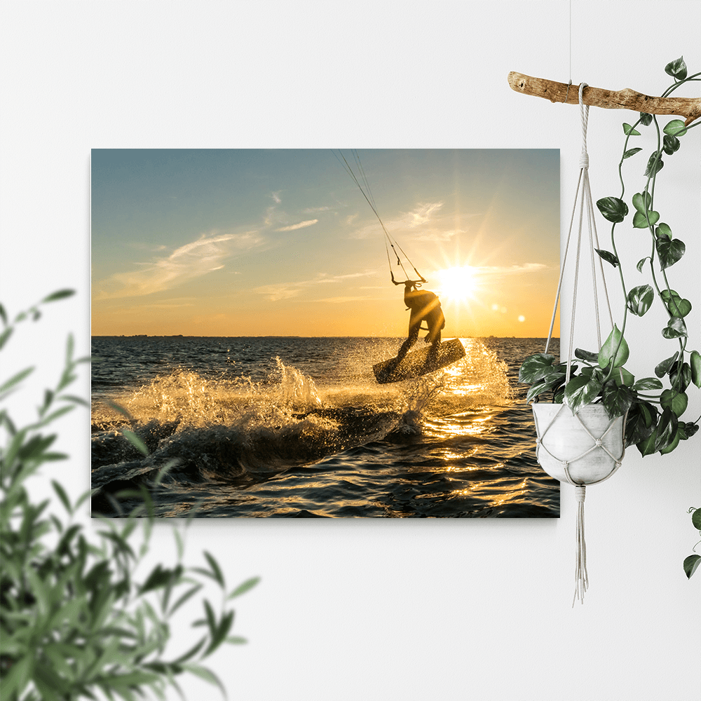 Motiv "Abheben". Der Wind kommt, du spürst es. Es wird Zeit, genau jetzt. Du hebst ab. Das Wasser spritzt.
