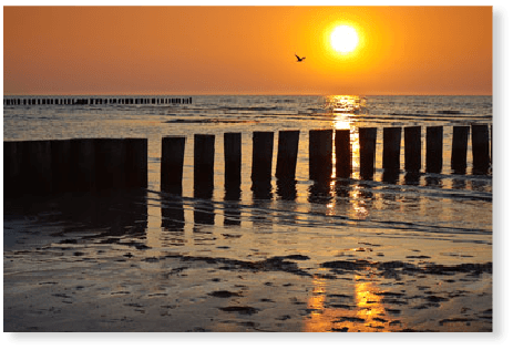 Motiv "Buhnen". Sie sonnen sich den ganzen Tag, auch jetzt noch in der Abenddämmerung und genießen den leichten Wellengang.
