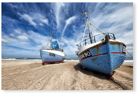 Motiv "Dänemark". Schon als Kind oft hiergewesen. Es ist immer noch schön. Genauso wie damals. Die Boote liegen am Strand. Ich genieße den Tag.