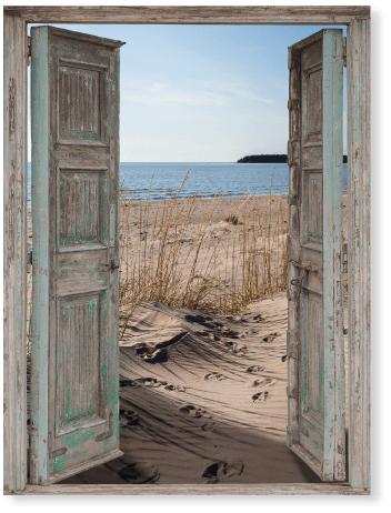 Motiv "Die Tür". Ich mache die Tür auf, bin direkt am Strand. Das Ferienhaus ist perfekt.