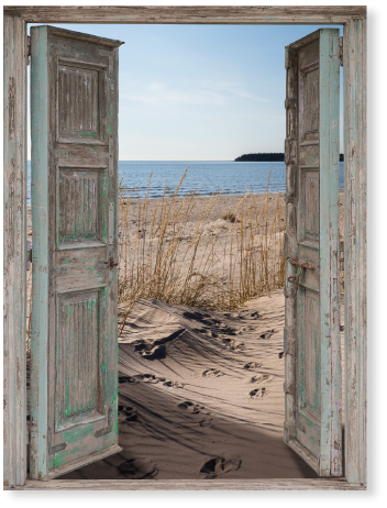 Motiv "Die Tür". Ich mache die Tür auf, bin direkt am Strand. Das Ferienhaus ist perfekt.