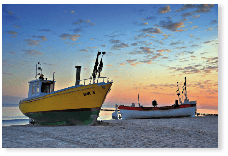 Motiv "Guten Abend". Zurück vom Fischen. Das Boot geparkt. Ab nach Hause. Die Beine hochlegen