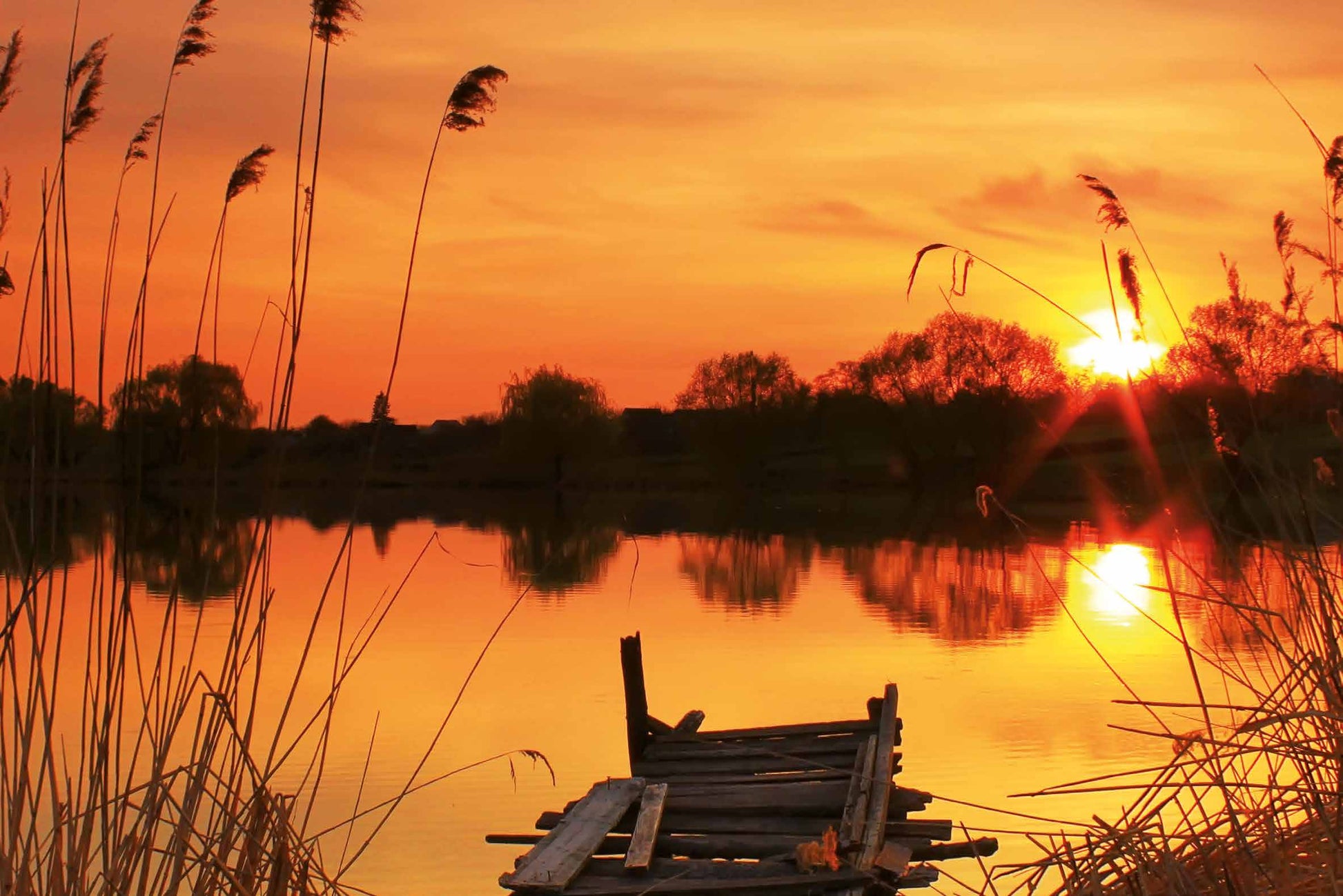 Motiv "Im Schilf". Bisschen durch die Gegend gewandert. Durchs Schilf geschaut. Einen alten Steg gesehen. Das Wasser ist ganz glatt.