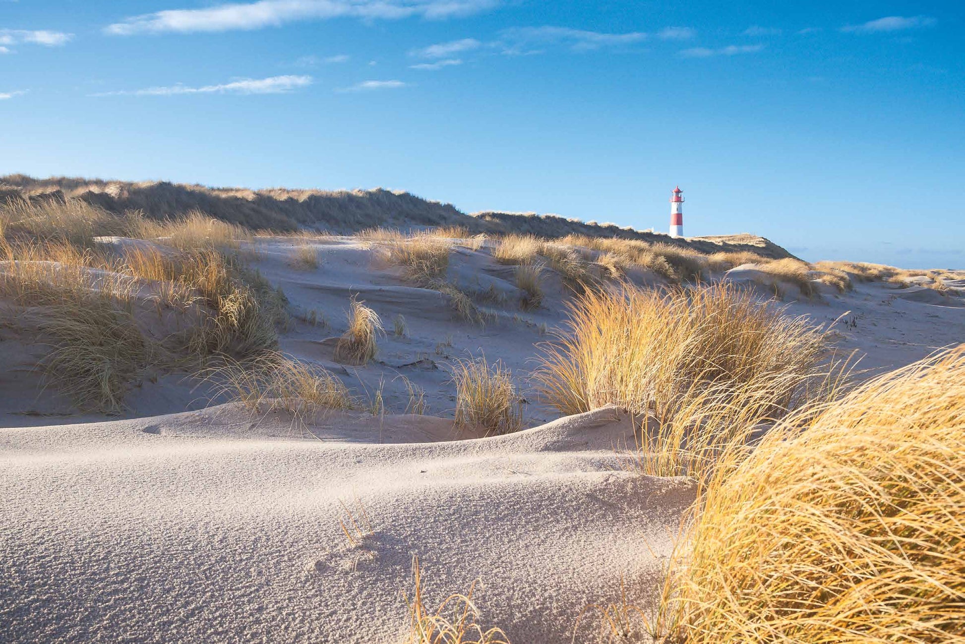 Motiv "In den Dünen". Ich wandere durch die Dünen. Erblicke den Leuchtturm. Spüre den Wind. Fühle mich frei.