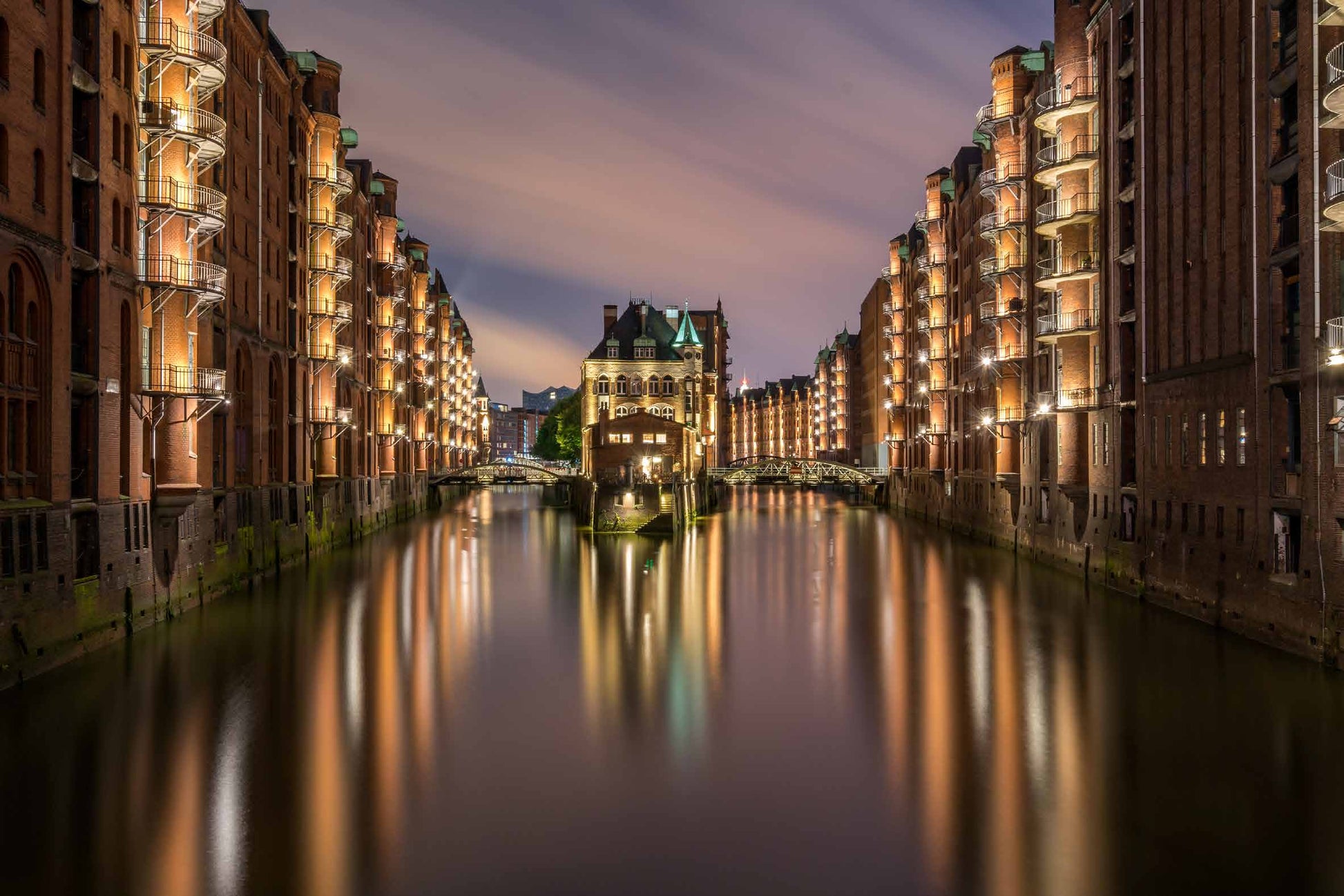 Motiv "Nachts in Hamburg". Es ist Ruhe eingekehrt. Keine Hektik vom Alltag. Nun kann man endlich mal durchatmen.