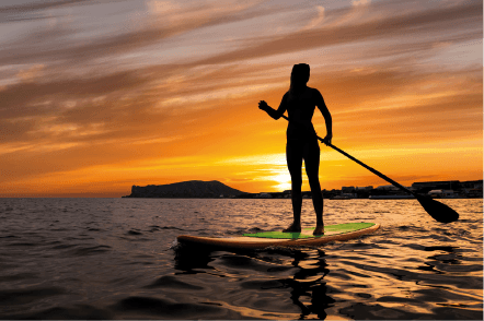 Motiv "Paddeln". Echt schön noch in der Dämmerung auf dem Board zu stehen. Die Sonne ist gleich weg, ich paddle Richtung Land.