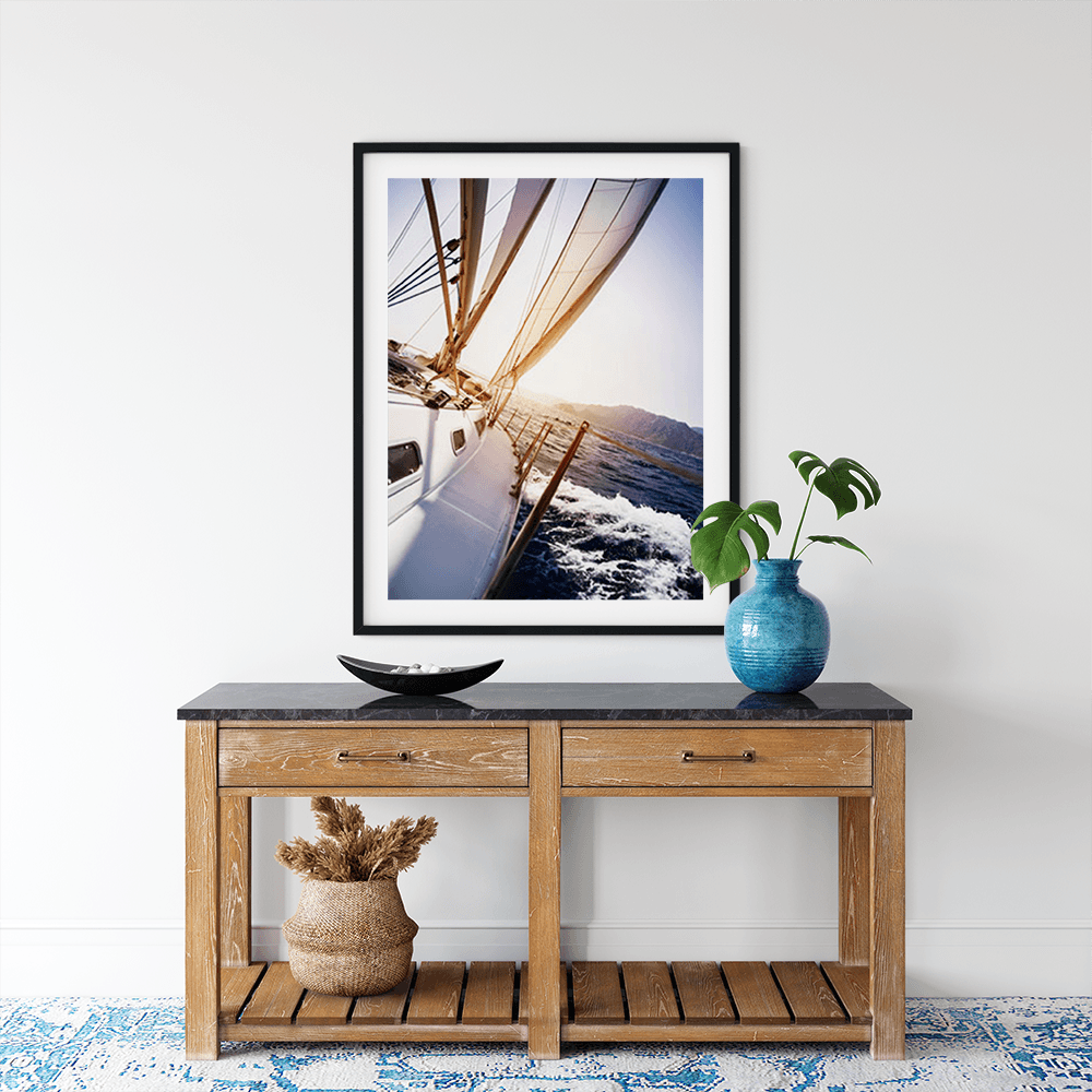 Motiv "Segeln". Du auf dem Wasser. Mit Deinem Boot. Nichts zu hören, nur das gleiten durchs Wasser. Du nimmst Geschwindigkeit auf.